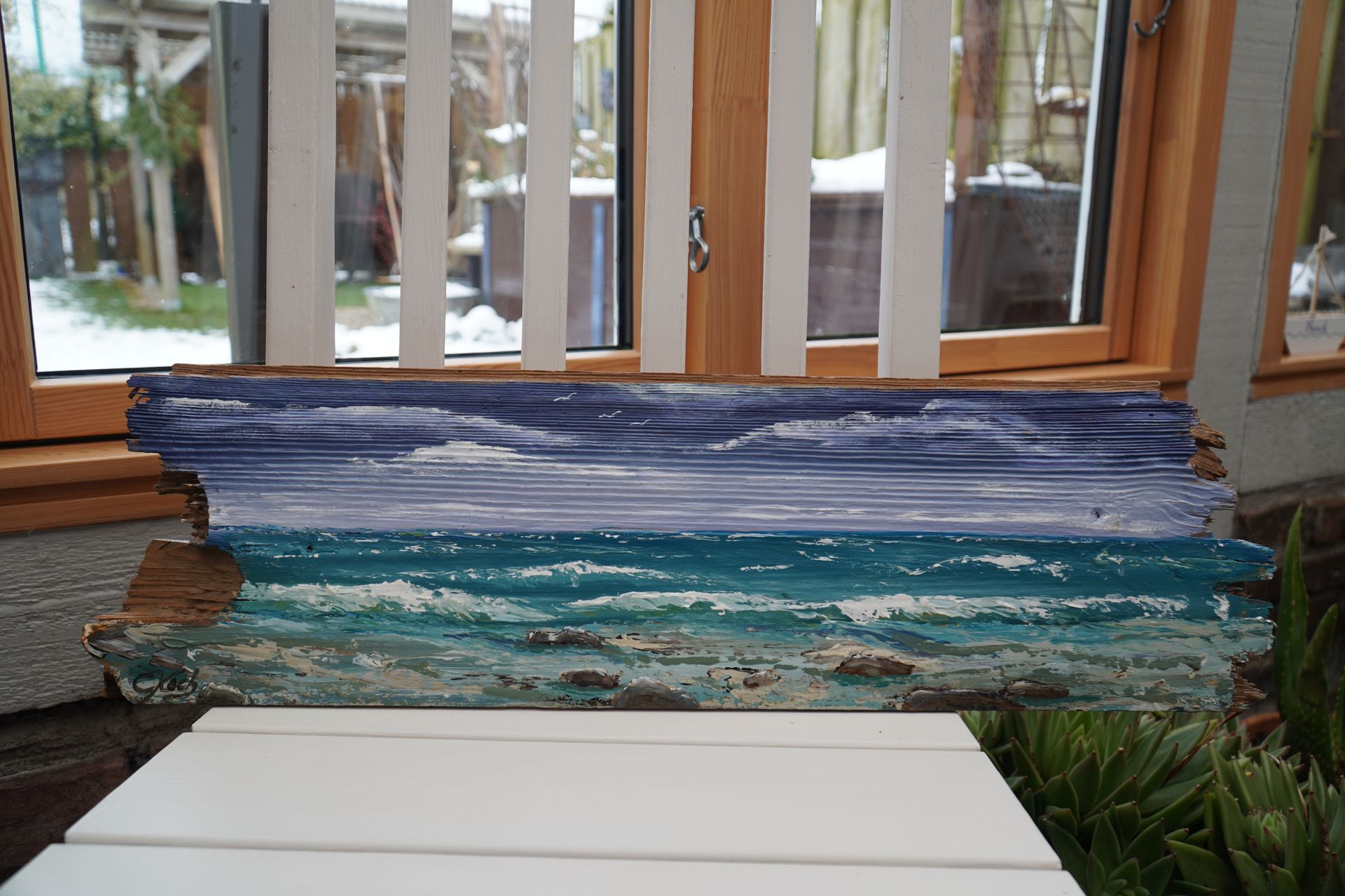 - Freie Kunst: Hier widme ich mich meinen Tierporträts und maritimen Bildern. Ob auf Altholz, Treibholz oder Leinwand – jedes Stück Holz, das ich hier bearbeite, bekommt seine ganz eigene Geschichte.