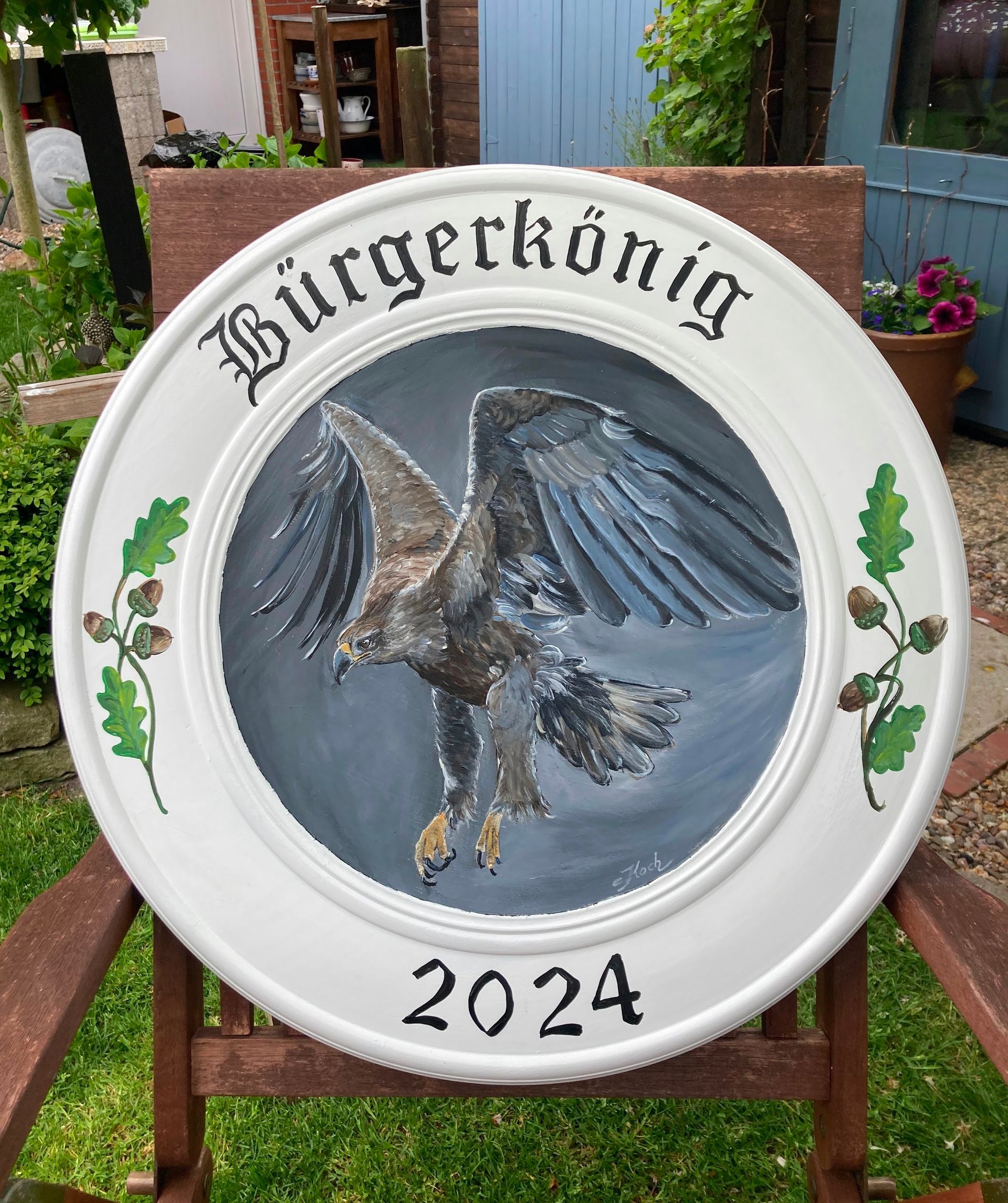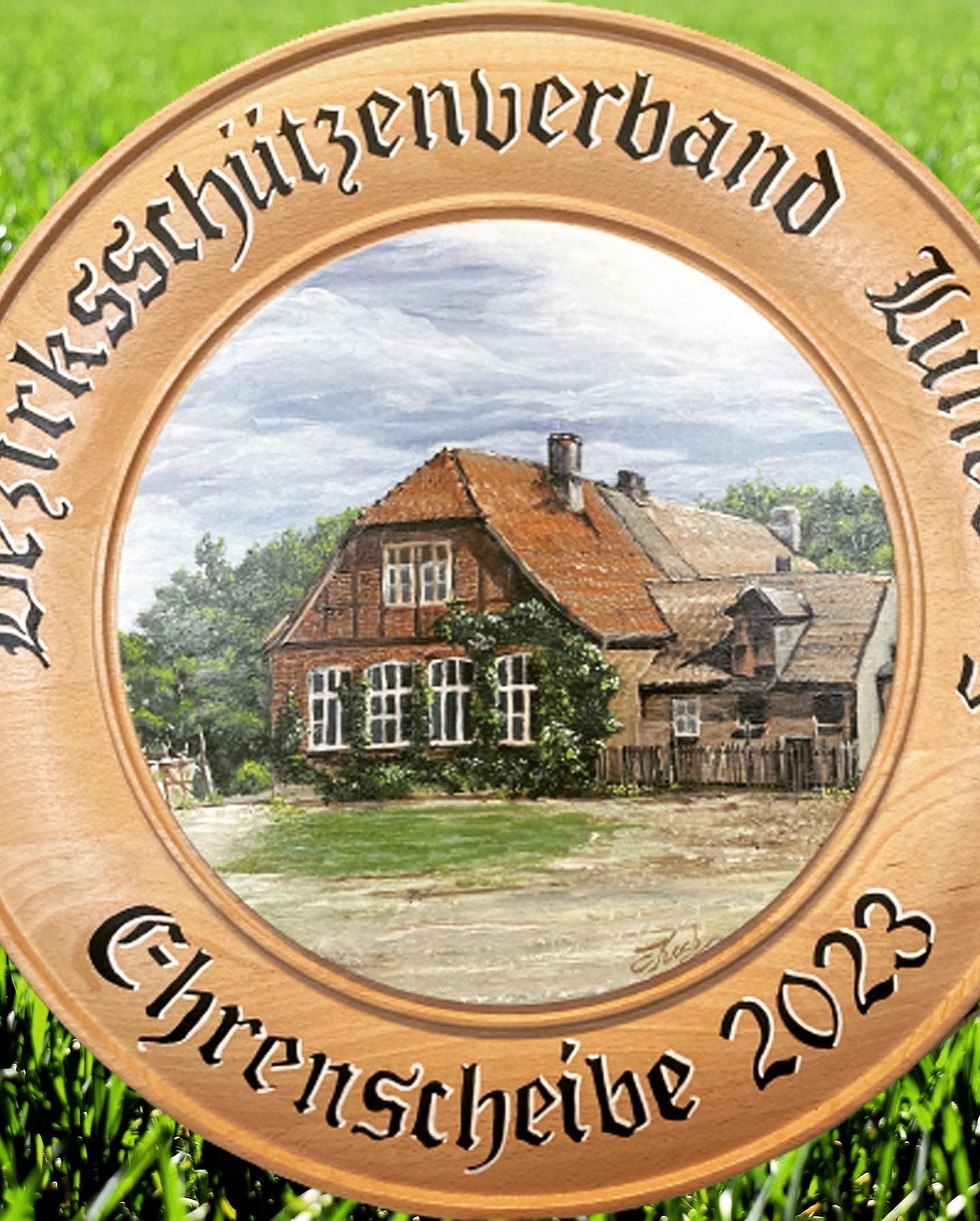 Du suchst für deinen Verein eine Ehrenscheibe, die Handwerkskunst und Tradition verbindet? Im Atelier am Deich fertige ich Königs- und Schützenscheiben als echte Unikate an. Jede Scheibe wird von mir individuell nach deinen Wünschen von Hand bemalt – mit viel Liebe zum Detail und handwerklicher Präzision.